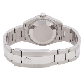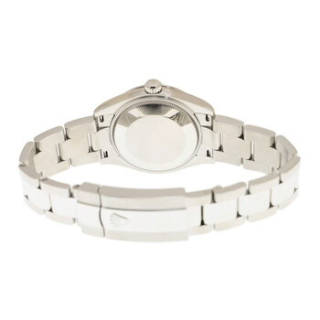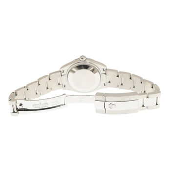 Silver-tone stainless steel case with a silver-tone stainless steel oyster bracelet. Fixed silver-tone stainless steel bezel. Blue dial with silver-tone hands and Roman numeral hour markers. Dial Type: Analog. Date display at the 3 o'clock position. Rolex Calibre 2236 Automatic movement, based upon Rolex 2235, containing 31 Jewels, bitting at 28800 vph, and has a power reserve of approximately 55 hours. Scratch resistant sapphire crystal. Screw down crown. Solid case back. Round case shape, case size: 31 mm. Oyster clasp. Water resistant at 100 meters / 330 feet. Functions: date, hour, minute, second, chronometer. Datejust Series. Luxury watch style. Watch label: Swiss Made. Rolex Datejust Automatic Chronometer Blue Dial Ladies Watch 278240BLRO.