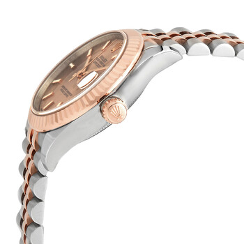 Stainless steel & rose gold case with a brushed & polished stainless steel & rose gold jubilee bracelet. Fixed rose gold-tone bezel. Gold dial. Dial Type: Analog. Date display at the 3 o'clock position. Rolex Calibre 2236 Automatic movement, based upon Rolex 2235, containing 31 Jewels, bitting at 28800 vph, and has a power reserve of approximately 55 hours. Scratch resistant sapphire crystal. Screw down crown. Solid case back. Round case shape, case size: 31 mm. Rolex concealed folding crown clasp. Water resistant at 100 meters / 330 feet. Functions: date, hour, minute, second, chronometer. Datejust Series. Luxury watch style. Watch label: Swiss Made. Rolex Datejust Automatic Chronometer Gold Dial Ladies Watch 278271GDSJ.