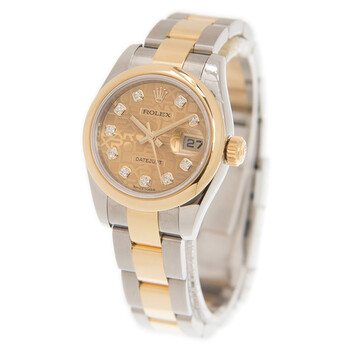Stainless steel case with a stainless steel and 18kt yellow gold Rolex Oyster bracelet. Domed 18kt yellow gold bezel. Champagne jubilee dial with gold-tone hands and diamond hour markers. Dial Type: Analog. Date display at the 3 o'clock position. Automatic movement. Rolex calibre 2235 engine with about 48 hours power reserve. Scratch resistant sapphire crystal. Screw down crown. Solid case back. Case diameter: 26mm. Round case shape. Oysterclasp clasp. Water resistant at 100 meters / 330 feet. Functions: date, hour, minute, second. Casual watch style. Watch label: Swiss Made. Rolex Datejust Automatic Stainless Steel 18kt Yellow Gold Oyster Ladies Watch 179163CJDO.