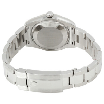 Stainless steel case with a stainless steel Rolex oyster bracelet. Fixed fluted 18kt white gold bezel. Black concentric circle dial with silver-tone hands and Arabic numeral hour markers. Minute markers around the outer rim. Dial Type: Analog. Date display at the 3 o'clock position. Rolex calibre 2235 automatic movement with a 48-hour power reserve. Scratch resistant sapphire crystal. Screw down crown. Solid case back. Case size: 31 mm. Round case shape. Oysterlock clasp. Water resistant at 100 meters / 330 feet. Functions: date, hour, minute, second. Luxury watch style. Watch label: Swiss Made. Rolex Datejust Lady 31 Black Concentric Circle Dial Stainless Steel Rolex Oyster Automatic Watch 178274BKCAO.