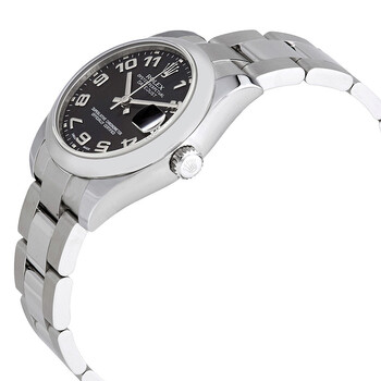 Silver-tone stainless steel case with a silver-tone stainless steel rolex oyster bracelet. Fixed domed silver-tone stainless steel bezel. Black concentric dial with silver-tone hands and Arabic numeral hour markers. Minute markers around the outer rim. Dial Type: Analog. Date display at the 3 o'clock position. Rolex Calibre 2235 Automatic movement, containing 31 Jewels, bitting at 28800 vph, and has a power reserve of approximately 48 hours. Scratch resistant sapphire crystal. Screw down crown. Solid case back. Round case shape, case size: 31 mm. Oysterlock clasp. Water resistant at 100 meters / 330 feet. Functions: date, hour, minute, second, chronometer. Datejust Lady 31 Series. Luxury watch style. Watch label: Swiss Made. Item Variations: 178240, 178240-BKCAO, Rolex-178240, Rolex-178240-BKCAO. Rolex Datejust Lady 31 Black Concentric Dial Stainless Steel Oyster Bracelet Automatic Watch 178240BKCAO.