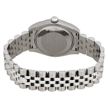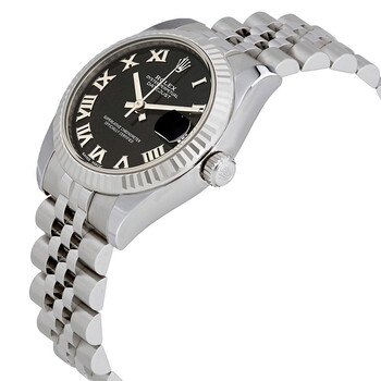 Stainless steel case with a stainless steel rolex jubilee bracelet. Fixed - fluted 18k white gold bezel. Black dial with silver-tone hands and Roman numeral hour markers. Dial Type: Analog. Date display at the 3 o'clock position. Automatic movement. Scratch resistant sapphire crystal. Case diameter: 31 mm. Round case shape. Deployment clasp. Water resistant at 100 meters / 330 feet. Functions: date, hour, minute, second. Additional Info: date displays at 3 o'clock position. Luxury watch style. Watch label: Swiss Made. Item Variations: 178274, 178274-BKRJ, Rolex-178274, Rolex-178274-BKRJ. Rolex Datejust Lady 31 Black Dial Stainless Steel Rolex Jubilee Automatic Watch 178274BKRJ.