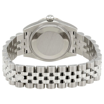 Stainless steel case with a stainless steel rolex jubilee bracelet. Fixed - 18k white gold diamond-set bezel. Blue dial with silver-tone hands and Roman numeral hour markers. Minute markers around the outer rim. Dial Type: Analog. Date display at the 3 o'clock position. Automatic movement. Scratch resistant sapphire crystal. Screw down crown. Case diameter: 31 mm. Round case shape. Concealed crown clasp. Water resistant at 100 meters / 330 feet. Functions: date, hour, minute, second. Luxury watch style. Watch label: Swiss Made. Rolex Datejust Lady 31 Blue Dial Stainless Steel Rolex Jubilee Automatic Watch 178384BLRJ.
