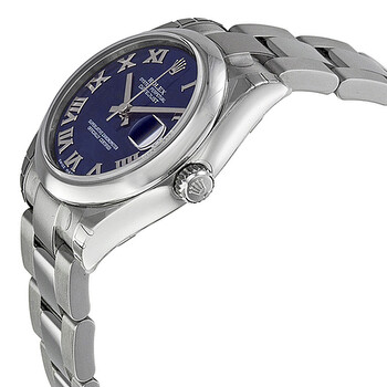 Stainless steel case with a stainless steel Rolex oyster bracelet. Fixed domed stainless steel bezel. Blue dial with silver-tone hands and Roman numeral hour markers. Dial Type: Analog. Date display at the 3 o'clock position. Rolex calibre 2235 Automatic movement, containing 31 Jewels, bitting at 28800 vph, and has a power reserve of approximately 48 hours. Scratch resistant sapphire crystal. Screw down crown. Solid case back. Round case shape. Case size: 31 mm. Oysterlock clasp. Water resistant at 100 meters / 330 feet. Functions: date, hour, minute, second, chronometer. Datejust Lady 31 Series. Luxury watch style. Watch label: Swiss Made. Item Variations: 178240, 178240-BLRO, Rolex-178240, Rolex-178240-BLRO. Rolex Datejust Lady 31 Blue Dial Stainless Steel Oyster Bracelet Automatic Watch 178240BLRO.