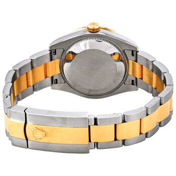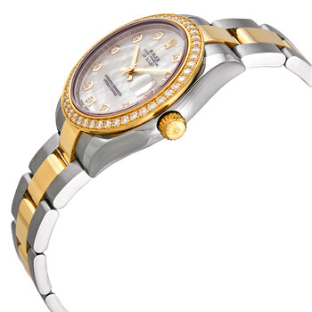 Stainless steel and 18k yellow gold case with a stainless steel and 18k yellow gold rolex oyster bracelet. Fixed - 18k yellow gold diamond-set bezel. Mother of pearl dial with yellow gold-tone hands and diamond hour markers. Dial Type: Analog. Date display at the 3 o'clock position. Automatic movement. Scratch resistant sapphire crystal. Screw down crown. Case diameter: 31 mm. Round case shape. Oysterclasp clasp. Water resistant at 100 meters / 330 feet. Functions: date, hour, minute, second. Luxury watch style. Watch label: Swiss Made. Rolex Datejust Lady 31 Mother of Pearl Dial Stainless Steel and 18K Yellow Gold Rolex Oyster Automatic Watch 178383MDO.