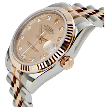 Stainless steel and 18k everose gold case with a stainless steel and 18k everose gold rolex jubilee bracelet. Fixed - fluted 18k everose gold bezel. Pink dial with rose gold-tone hands and diamonds hour markers. Minute markers around the outer rim. Dial Type: Analog. Date display at the 3 o'clock position. Automatic movement. Scratch resistant sapphire crystal. Case diameter: 31 mm. Round case shape. Water resistant at 100 meters / 330 feet. Functions: date, hour, minute, second. Luxury watch style. Watch label: Swiss Made. Rolex Datejust Lady 31 Pink Dial Stainless Steel and 18K Everose Gold Rolex Jubilee Automatic Watch 178271PGDDJ.