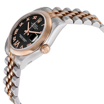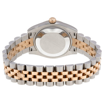 Stainless steel and 18k everose gold case with a stainless steel and 18k everose gold rolex jubilee bracelet. Fixed - domed 18k everose gold bezel. Purple set with diamonds dial with rose gold-tone hands and Roman numeral hour markers. Dial Type: Analog. Date display at the 3 o'clock position. Automatic movement. 2235 engine. Scratch resistant sapphire crystal. Screw down crown. Solid case back. Case diameter: 31 mm. Round case shape. Water resistant at 100 meters / 330 feet. Functions: date, hour, minute, second. Luxury watch style. Watch label: Swiss Made. Rolex Datejust Lady 31 Purple Set With Diamonds Dial Stainless Steel and 18K Everose Gold Rolex Jubilee Automatic Watch 178241PURDJ.