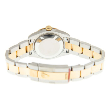 Stainless steel and 18k yellow gold case with a stainless steel and 18k yellow gold rolex oyster bracelet. Fixed - 18k yellow gold diamond-set bezel. Silver dial with yellow gold-tone hands and diamond hour markers. Dial Type: Analog. Date display at the 3 o'clock position. Automatic movement. Scratch resistant sapphire crystal. Screw down crown. Case diameter: 31 mm. Round case shape. Oysterclasp clasp. Water resistant at 100 meters / 330 feet. Functions: date, hour, minute, second. Luxury watch style. Watch label: Swiss Made. Rolex Datejust Lady 31 Silver Dial Stainless Steel and 18K Yellow Gold Rolex Oyster Automatic Watch 178343GRDO.