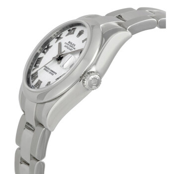 Stainless steel case with a stainless steel Rolex oyster bracelet. Fixed domed stainless steel bezel. White dial with silver-tone hands and Roman numeral hour markers. Dial Type: Analog. Date display at the 3 o'clock position. Rolex calibre 2235 automatic movement, containing 31 Jewels, bitting at 28800 vph, and has a power reserve of approximately 48 hours. Scratch resistant sapphire crystal. Screw down crown. Solid case back. Round case shape. Case size: 31 mm. Oysterlock clasp. Water resistant at 100 meters / 330 feet. Functions: date, hour, minute, second, chronometer. Datejust Lady 31 Series. Luxury watch style. Watch label: Swiss Made. Item Variations: 178240, 178240-WRO, Rolex-178240, Rolex-178240-WRO. Rolex Datejust Lady 31 White Dial Stainless Steel Oyster Bracelet Automatic Watch 178240WRO.
