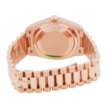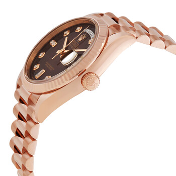 18kt everose gold case with a 18kt everose gold rolex president bracelet. Fixed- fluted bezel. Brown dial with everose gold hands and diamonds hour markers. Dial Type: Analog. Date display at the 3 o'clock position. Rolex Calibre 3255 Automatic movement, based upon Rolex 3035, containing 31 Jewels, bitting at 28800 vph, and has a power reserve of approximately 70 hours. Scratch resistant sapphire crystal. Screw down crown. Solid case back. Round case shape. Case size: 36 mm. Folding crown clasp. Water resistant at 100 meters / 330 feet. Functions: date, day, hour, minute, second. Luxury watch style. Watch label: Swiss Made. Rolex Day-Date 36 Automatic Diamond Brown Dial Watch 128235CHDP.m128235-0037, 128235-0037, m128235, m128237