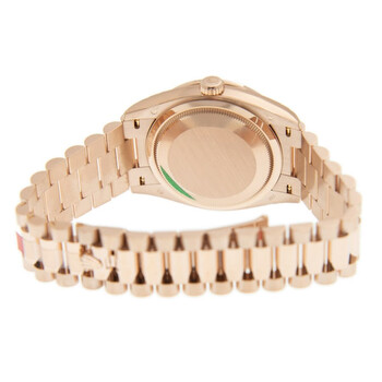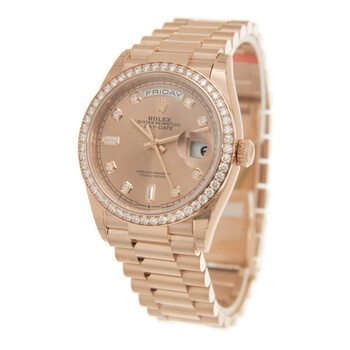 18kt everose gold case with a 18kt everose gold rolex president bracelet. Fixed- fluted 18kt everose gold bezel. Rose dial with everose gold hands and Roman- diamond numerals hour markers. Dial Type: Analog. Date display at the 3 o'clock position. Rolex Calibre 3255 Automatic movement, based upon Rolex 3035, containing 31 Jewels, bitting at 28800 vph, and has a power reserve of approximately 70 hours. Scratch resistant sapphire crystal. Screw down crown. Solid case back. Round case shape. Case size: 36 mm. Water resistant at 100 meters / 330 feet. Functions: date, day, hour, minute, second. Luxury watch style. Watch label: Swiss Made. Rolex Day-Date 36 Rose Diamond Dial Automatic 18kt Everose Gold President Watch 128345PDP.m128345rbr-0009, 128345rbr-0009, m128345rbr