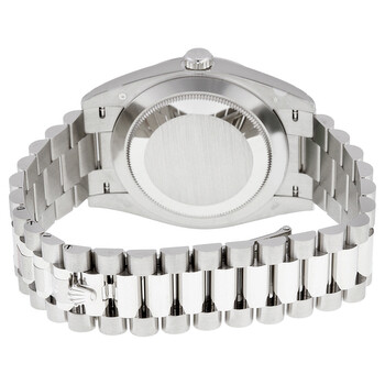 18kt white gold case with a 18kt white gold Rolex president bracelet. Fixed fluted 18kt white gold bezel. Silver quadrant motif dial with white gold hands and alternating index and Roman numeral hour markers. Minute markers around the outer rim. Dial Type: Analog. Date display at the 3 o'clock position. Day of the week display centered on the 12 o'clock position. Rolex calibre 3255 automatic movement with a 70-hour power reserve. Scratch resistant sapphire crystal. Screw down crown. Solid case back. Round case shape. Case size: 40 mm. Concealed crown clasp. Water resistant at 100 meters / 330 feet. Functions: date, day, hour, minute, second, chronometer. Luxury watch style. Watch label: Swiss Made. Rolex Day-Date 40 Silver Quadrant Motif Dial 18K White Gold President Automatic Men's Watch 228239SQRSP.