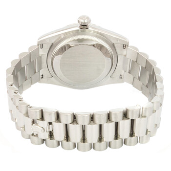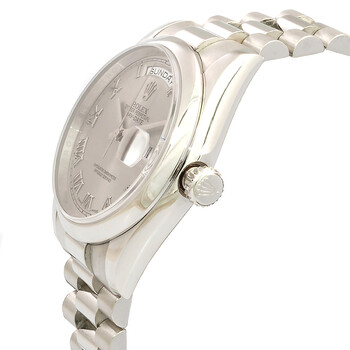 Platinum case with a platinum Rolex President bracelet. Fixed - domed platinum bezel. Grey dial with silver tone hands and Roman numeral hour markers. Dial Type: Analog. Date display at 3 o'clock; day display at 12 o'clock.. Automatic movement. Scratch resistant sapphire crystal. Screw down crown. Solid case back. Case diameter: 36 mm. Round case shape. Concealed Crown clasp. Water resistant at 100 meters / 330 feet. Functions: date, day, hour, minute, second. Luxury watch style. Watch label: Swiss Made. Rolex Day-Date Grey Dial Platinum President Automatic Men's Watch 118206GYRP.