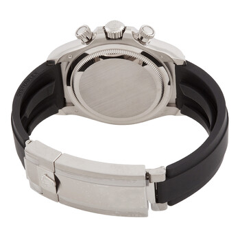 18kt white gold case with a black rubber strap. Fixed tachymeter scale black cerachrom bezel. Black dial with silver-tone hands and index hour markers. Minute markers around the outer rim. Dial Type: Analog. Luminescent hands and markers. Chronograph - three sub-dials displaying: 60 second, 30 minute and 12 hour. Rolex Calibre 4131 automatic movement with a 72-hour power reserve. Scratch resistant sapphire crystal. Screw down crown. Solid case back. Round case shape, case size: 40 mm. Fold over clasp with a safety release. Water resistant at 100 meters / 330 feet. Functions: chronograph, hour, minute, second. Additional Info: original box, manual (complete accessories). Daytona Series. Luxury watch style. Watch label: Swiss Made. Rolex Daytona Chronograph Automatic Black Dial Men's Watch 126519LN-0002.