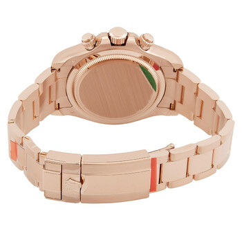 Rose gold-tone 18kt rose gold case with a rose gold-tone 18kt rose gold oyster bracelet. Fixed tachymeter scale rose gold-tone 18kt rose gold bezel. Black dial with rose gold-tone hands and index hour markers. Minute markers around the outer rim. Dial Type: Analog. Luminescent hands and markers. Chronograph - three sub-dials displaying: 60 second, 30 minute and 12 hour. Rolex Calibre 4131 automatic movement with a 72-hour power reserve. Scratch resistant sapphire crystal. Screw down crown. Solid case back. Round case shape, case size: 40 mm. Fold over clasp with a safety release. Water resistant at 100 meters / 330 feet. Functions: chronograph, hour, minute, second. Additional Info: original box, manual (complete accessories). Daytona Series. Luxury watch style. Watch label: Swiss Made. Rolex Daytona Chronograph Automatic Black Dial Men's Watch 126505-0001.