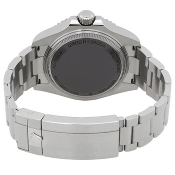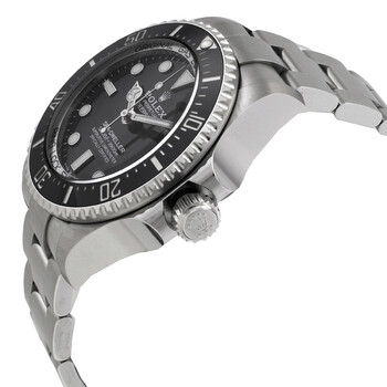 Silver-tone stainless steel case with a silver-tone stainless steel oyster bracelet. Black ceramic bezel. Black dial with silver-tone hands and index hour markers. Minute markers around the outer rim. Dial Type: Analog. Luminescent hands and markers. Date display at the 3 o'clock position. Automatic movement. Scratch resistant sapphire crystal. Screw down crown. Solid case back. Round case shape, case size: 44 mm. Fold over clasp with a safety release. Water resistant at 3900 meters / 12800 feet. Functions: date, hour, minute, second. Additional Info: original box, international warranty card, manual (complete accessories). Deep Sea Series. Dive watch style. Watch label: Swiss Made. Rolex Deep Sea Automatic Black Dial Men's Watch 136660BKSO.