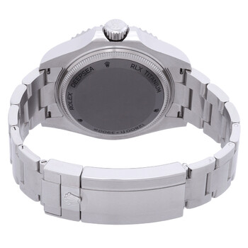 Silver-tone stainless steel case with a silver-tone stainless steel oyster bracelet. Black ceramic bezel. Intense black dial with index hour markers. Minute markers around the outer rim. Dial Type: Analog. Luminescent hands and markers. Date display at the 3 o'clock position. Rolex Calibre 3235 Automatic movement, based upon Rolex 3035, containing 31 Jewels, bitting at 28800 vph, and has a power reserve of approximately 70 hours. Scratch resistant sapphire crystal. Screw down crown. Solid case back. Round case shape, case size: 44 mm. Fold over clasp with a safety release. Water resistant at 3900 meters / 12800 feet. Functions: date, hour, minute, second. Deepsea Series. Dive watch style. Watch label: Swiss Made. Item Variations: 136660-0006. Rolex Deep Sea Automatic Black Dial Men's Watch M136660-0006.