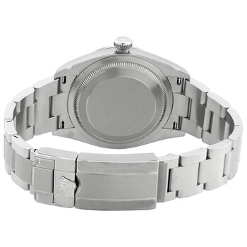 Stainless steel case with a stainless steel bracelet. Fixed stainless steel bezel. Black dial with luminous silver-tone hands and index hour markers. Arabic numerals appear at the 3, 6 and 9 o'clock positions. Minute markers around the outer rim. Dial Type: Analog. Rolex calibre 3230 automatic movement, containing 31 Jewels, bitting at 28800 vph, and has a power reserve of approximately 70 hours. Scratch resistant sapphire crystal. Screw down crown. Solid case back. Round case shape. Case size: 36 mm. Oysterlock clasp. Water resistant at 100 meters / 330 feet. Functions: hour, minute, second, chronometer. Explorer Series. Luxury watch style. Watch label: Swiss Made. Item Variations: m124270-0001, 124270-0001, 124270. Rolex Explorer Automatic Chronometer Black Dial Men's Watch 124270BKASO.