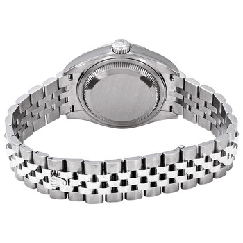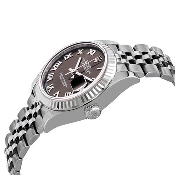 Silver-tone stainless steel case with a silver-tone stainless steel rolex jubilee bracelet. Fixed - fluted silver-tone stainless steel bezel. Grey dial with silver-tone hands and Roman numeral hour markers. Dial Type: Analog. Date display at the 3 o'clock position. Rolex Calibre 2236 automatic movement with a 55-hour power reserve. Scratch resistant sapphire crystal. Screw down crown. Solid case back. Round case shape. Case size: 28 mm. Fold over with safety release clasp. Water resistant at 100 meters / 330 feet. Functions: date, hour, minute, second. Luxury watch style. Watch label: Swiss Made. Rolex Lady Datejust Automatic Grey Dial Ladies Jubilee Watch 279174GYRJ.
