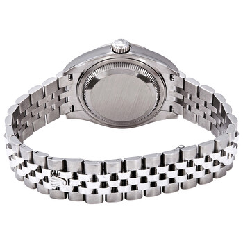 Silver-tone stainless steel case with a silver-tone stainless steel rolex jubilee bracelet. Fixed - fluted silver-tone stainless steel bezel. Grey dial with silver-tone hands and index hour markers. Dial Type: Analog. Date display at the 3 o'clock position. Rolex Calibre 2236 automatic movement with a 55-hour power reserve. Scratch resistant sapphire crystal. Screw down crown. Solid case back. Round case shape. Case size: 28 mm. Fold over with safety release clasp. Water resistant at 100 meters / 330 feet. Functions: date, hour, minute, second. Luxury watch style. Watch label: Swiss Made. Rolex Lady Datejust Automatic Grey Dial Ladies Jubilee Watch 279174GYSJ.