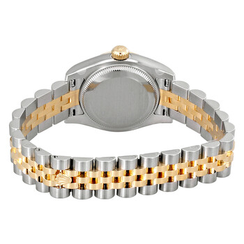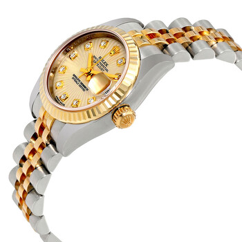 Stainless steel case with a stainless steel Rolex jubilee bracelet with 18kt yellow gold center links. Fixed fluted 18kt yellow gold bezel. Ivory sunbeam dial with yellow gold-tone hands and diamond hour markers. Dial Type: Analog. Date display at the 3 o'clock position. Rolex calibre 2235 automatic movement with a 48-hour power reserve. Scratch resistant sapphire crystal. Screw down crown. Solid case back. Case size: 26 mm. Round case shape. Concealed crown clasp. Water resistant at 100 meters / 330 feet. Functions: date, hour, minute, second, chronometer. Luxury watch style. Watch label: Swiss Made. Rolex Lady Datejust Ivory Sunbeam Diamond Dial Automatic Watch 179173IVDJ.