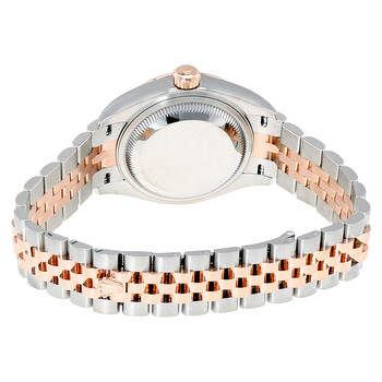Stainless steel case with a stainless steel Rolex jubilee bracelet with 18kt everose gold center links. Fixed fluted 18kt everose gold bezel. Olive dial with rose gold-tone hands and diamond hour markers. Dial Type: Analog. Date display at the 3 o'clock position. Rolex calibre 2236 automatic movement with a 55-hour power reserve. Scratch resistant sapphire crystal. Screw down crown. Solid case back. Case size: 28 mm. Round case shape. Concealed crown clasp. Water resistant at 100 meters / 330 feet. Functions: date, hour, minute, second. Luxury watch style. Watch label: Swiss Made. Rolex Lady Datejust Olive Dial Steel and 18K Everose Gold Ladies Watch 279171ODJ.