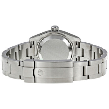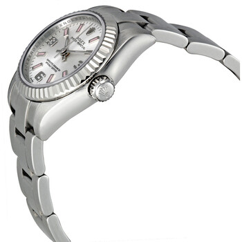 Stainless steel case with a stainless steel rolex oyster bracelet. Fixed - fluted 18k white gold bezel. Silver dial with silver-tone hands and index hour markers. Arabic numerals mark the 3, 6 and 9 o'clock positions. minute markers around the outer rim. Dial Type: Analog. Automatic movement. Scratch resistant sapphire crystal. Case diameter: 26 mm. Round case shape. Water resistant at 100 meters / 330 feet. Functions: hour, minute, second. Luxury watch style. Watch label: Swiss Made. Rolex Lady Oyster Perpetual 26 Silver Dial Stainless Steel Rolex Oyster Automatic Watch 176234SAPSO.