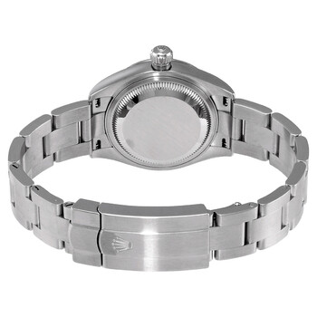Stainless steel case with a stainless steel bracelet. Fixed stainless steel bezel. Blue dial with luminoussilver-tone hands and index hour markers. Minute markers around the outer rim. Dial Type: Analog. Luminescent hands. Rolex calibre 2232 automatic movement, containing 31 Jewels, bitting at 28800 vph, and has a power reserve of approximately 55 hours. Scratch resistant sapphire crystal. Screw down crown. Solid case back. Round case shape. Case size: 28 mm. Oysterlock clasp. Water resistant at 100 meters / 330 feet. Functions: hour, minute, second, chronometer. Oyster Perpetual 28 Series. Luxury watch style. Watch label: Swiss Made. Item Variations: M276200-0003. Rolex Oyster Perpetual 28 Automatic Chronometer Blue Dial Ladies Watch 276200BLSO.