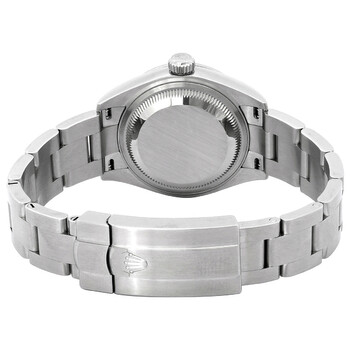 Stainless steel case and bracelet. Fixed silver-tone stainless steel bezel. Silver dial with index hour markers. Dial Type: Analog. Rolex Calibre 2232 Automatic movement, containing 31 Jewels, bitting at 28800 vph, and has a power reserve of approximately 55 hours. Scratch resistant sapphire crystal. Screw down crown. Solid case back. Round case shape, case size: 28 mm. Oysterlock clasp. Water resistant at 100 meters / 330 feet. Functions: hour, minute, second, chronometer. Oyster Perpetual 28 Series. Luxury watch style. Watch label: Swiss Made. Item Variations: M276200-0001. Rolex Oyster Perpetual 28 Automatic Chronometer Silver Dial Ladies Watch 276200SSO.