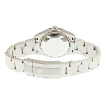 Silver-tone stainless steel case and bracelet. Fixed silver-tone stainless steel bezel. Pink dial with silver-tone hands and index hour markers. Minute markers around the outer rim. Dial Type: Analog. Rolex Calibre 2232 Automatic movement, containing 31 Jewels, bitting at 28800 vph, and has a power reserve of approximately 55 hours. Scratch resistant sapphire crystal. Screw down crown. Solid case back. Round case shape, case size: 31 mm. Oysterlock clasp. Water resistant at 100 meters / 330 feet. Functions: hour, minute, second, chronometer. Oyster Perpetual 31 Series. Sport watch style. Watch label: Swiss Made. Item Variations: M277200-0004. Rolex Oyster Perpetual 31 Automatic Pink Dial Ladies Watch 277200PKSO.
