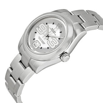 Stainless steel case with a stainless steel rolex oyster bracelet. Fixed - domed stainless steel bezel. Silver dial with silver-tone hands and index hour markers. Arabic numerals mark the 3, 6 and 9 o'clock positions. minute markers. Dial Type: Analog. Luminescent hands and dial markers. Automatic movement. Scratch resistant sapphire crystal. Case diameter: 31 mm. Round case shape. Water resistant at 100 meters / 330 feet. Functions: hour, minute, second. Luxury watch style. Watch label: Swiss Made. Rolex Oyster Perpetual 31 mm Silver Dial Stainless Steel Rolex Oyster Automatic Unisex Watch 177200S369O.