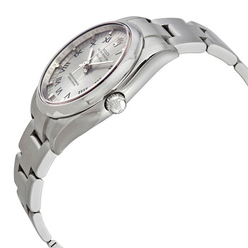Stainless steel case with a stainless steel Rolex oyster bracelet. Fixed domed stainless steel bezel. Grey dial with silver-tone hands and Roman numeral hour markers. Minute markers around the outer rim. Dial Type: Analog. Luminescent hands and markers. Automatic movement with a 48-hour power reserve. Scratch resistant sapphire crystal. Case diameter: 34 mm. Round case shape. Deployment clasp. Water resistant at 100 meters / 330 feet. Functions: hour, minute, second. Luxury watch style. Watch label: Swiss Made. Item Variations: 114200, 114200-GYRO, Rolex-114200, Rolex-114200-GYRO. Rolex Oyster Perpetual 34 Grey Dial Stainless Steel Rolex Oyster Automatic Men's Watch 114200GYRO.