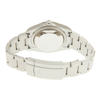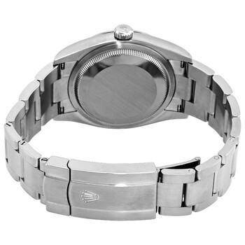 Stainless steel case with a stainless steel bracelet. Fixed stainless steel bezel. Silver dial with luminous gold-tone hands and index hour markers. Dial Type: Analog. Luminescent hands and markers. Rolex calibre 3230 Automatic movement, containing 31 Jewels, bitting at 28800 vph, and has a power reserve of approximately 70 hours. Scratch resistant sapphire crystal. Screw down crown. Solid case back. Round case shape. Case size: 36 mm. Oysterlock clasp. Water resistant at 100 meters / 330 feet. Functions: hour, minute, second, chronometer. Oyster Perpetual 36 Series. Sport watch style. Watch label: Swiss Made. Item Variations: M126000-0001. Rolex Oyster Perpetual 36 Automatic Chronometer Silver Dial Watch 126000SSO.