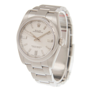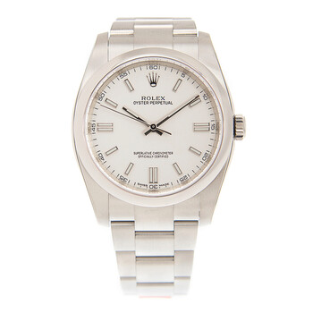 Stainless steel case with a silver-tone stainless steel rolex oyster bracelet. Fixed domed stainless steel polished bezel. White dial with Arabic hour markers. Minute markers. Dial Type: Analog. Luminescent hands and dial markers. Rolex Calibre 3130 automatic movement with a 48-hour power reserve. Scratch resistant sapphire crystal. Screw down crown. Solid case back. Round case shape. Case size: 36 mm. Oysterlock clasp. Water resistant at 100 meters / 330 feet. Functions: hour, minute, second, chronometer. Additional Info: original box, international warranty card, manual (complete accessories). Luxury watch style. Watch label: Swiss Made. Rolex Oyster Perpetual 36 Automatic Chronometer White Dial Men's Watch 116000-0012.
