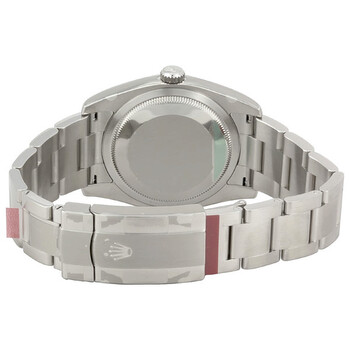 Stainless steel case with a stainless steel Rolex oyster bracelet. Fixed domed stainless steel bezel. Black dial with silver-tone hands and pink index hour markers. Arabic numerals mark the 3, 6 and 9 o'clock positions. The Rolex logo appears at the 12 o'clock position. Dial Type: Analog. Luminescent hands and dial markers. Rolex calibre 3130 automatic movement with a 48-hour power reserve. Scratch resistant sapphire crystal. Screw down crown. Solid case back. Case size: 36 mm. Round case shape. Oysterlock clasp. Water resistant at 100 meters / 330 feet. Functions: hour, minute, second. Luxury watch style. Watch label: Swiss Made. Item Variations: 116000. Rolex Oyster Perpetual 36 mm Black Dial Stainless Steel Rolex Oyster Automatic Men's Watch 116000BKAPSO.