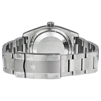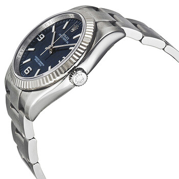 Stainless steel case with a stainless steel rolex oyster bracelet. Fixed - fluted 18k white gold bezel. Blue dial with silver-tone hands and Arabic and stick hour markers. Dial Type: Analog. Automatic movement. Scratch resistant sapphire crystal. Case diameter: 36 mm. Round case shape. Water resistant at 100 meters / 330 feet. Functions: hour, minute, second. Luxury watch style. Watch label: Swiss Made. Rolex Oyster Perpetual 36 mm Blue Dial Stainless Steel Rolex Oyster Automatic Men's Watch 116034BLASO.