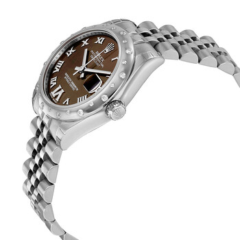 Stainless steel case with a stainless steel rolex jubilee bracelet. Fixed - domed 18k white gold diamond-set bezel. Bronze dial with silver-tone hands and diamond hour markers. Dial Type: Analog. Date display at the 3 o'clock position. Automatic movement. Scratch resistant sapphire crystal. Screw down crown. Solid case back. Case diameter: 31 mm. Round case shape. Concealed crown clasp. Water resistant at 100 meters / 330 feet. Functions: date, hour, minute, second. Luxury watch style. Watch label: Swiss Made. Rolex Oyster Perpetual Datejust 31 Bronze Dial Stainless Steel Rolex Jubilee Automatic Ladies Watch 178344BRDJ.
