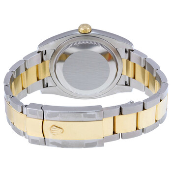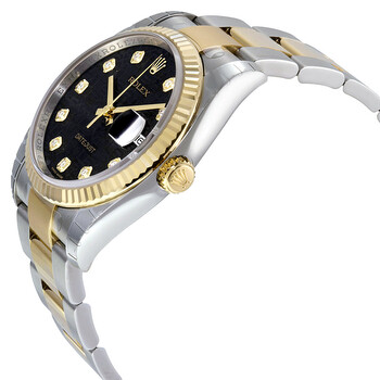 Stainless steel and 18k yellow gold case with a stainless steel and 18k yellow gold rolex oyster bracelet. Fixed - fluted 18k yellow gold bezel. Black jubilee dial with yellow gold-tone hands and diamond hour markers. Dial Type: Analog. Date display at the 3 o'clock position. Automatic movement. Rolex 3135 engine. Scratch resistant sapphire crystal. Screw down crown. Case diameter: 36 mm. Round case shape. Folding oyster clasp. Water resistant at 100 meters / 330 feet. Functions: date, hour, minute, second. Luxury watch style. Watch label: Swiss Made. Rolex Oyster Perpetual Datejust 36 Black Jubilee Dial Stainless Steel and 18K Yellow Gold Rolex Oyster Automatic Men's Watch 116233BKJDO.