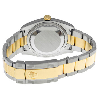 Stainless steel case with a stainless steel Rolex oyster bracelet with 18kt yellow gold center links. Fixed fluted 18kt yellow gold bezel. Champagne dial with luminous yellow gold-tone hands and luminous stick hour markers. Minute markers around the outer rim. Dial Type: Analog. Luminescent hands and dial markers. Date display at the 3 o'clock position. Rolex calibre 3135 automatic movement with a 50-hour power reserve. Scratch resistant sapphire crystal. Screw down crown. Solid case back. Case size: 36 mm. Round case shape. Oysterlock clasp. Water resistant at 100 meters / 330 feet. Functions: date, hour, minute, second. Luxury watch style. Watch label: Swiss Made. Item Variations: 116233CO, Rolex-116233CO 116233, 116233-CSO, Rolex-116233, Rolex-116233-CSO. Rolex Oyster Perpetual Datejust 36 Champagne Dial Stainless Steel and 18K Yellow Gold Rolex Oyster Automatic Men's Watch 116233CSO.