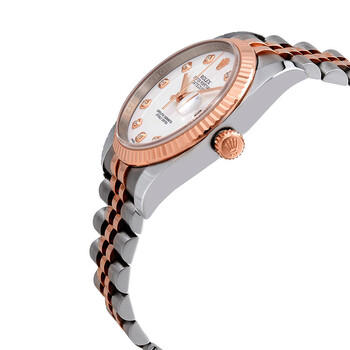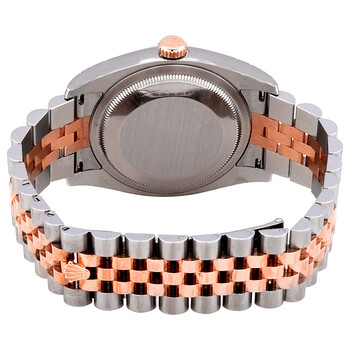 Stainless steel and 18k everose gold case with a stainless steel and 18k everose gold rolex jubilee bracelet. Fixed - fluted 18k everose gold bezel. White dial with rose gold-tone hands and diamond hour markers. Dial Type: Analog. Date display at the 3 o'clock position. Automatic movement. Scratch resistant sapphire crystal. Solid case back. Case diameter: 36 mm. Round case shape. Concealed crown clasp. Water resistant at 100 meters / 330 feet. Functions: date, hour, minute, second. Luxury watch style. Watch label: Swiss Made. Rolex Oyster Perpetual Datejust 36 White Dial Stainless Steel and 18K Everose Gold Rolex Jubilee Automatic Men's Watch 116231WDJ.