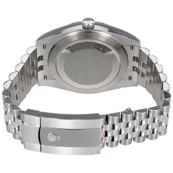 Stainless steel case with a stainless steel Rolex Jubilee bracelet. Fluted 18kt white gold bezel. Black dial with luminous silver-tone hands and index hour markers. Arabic numeral minute markers (at 5 minute intervals). Minute markers around the outer rim. Dial Type: Analog. Date display at the 3 o'clock position. Rolex calibre 3235 automatic movement with a 70-hour power reserve. Scratch resistant sapphire crystal. Screw down crown. Solid case back. Case size: 41 mm. Round case shape. Concealed crown clasp. Water resistant at 100 meters / 330 feet. Functions: date, hour, minute, second. Luxury watch style. Watch label: Swiss Made. Rolex Oyster Perpetual Datejust Black Dial Jubilee Men's Watch 126334BKSJ.