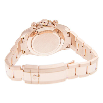 18kt rose gold case with a gold-tone 18kt rose gold bracelet. Fixed 36 baguette-cut sapphires bezel. Black dial with gold-tone hands and diamond hour markers. Dial Type: Analog. Chronograph - three sub-dials displaying: 60 second, 30 minute and 12 hour. Rolex Calibre 4130 automatic movement with a 72-hour power reserve. Scratch resistant sapphire crystal. Screw down crown. Solid case back. Round case shape. Case size: 40 mm. Water resistant at 100 meters / 330 feet. Functions: chronograph, hour, minute, small second, chronometer. Luxury watch style. Watch label: Swiss Made. Rolex Rainbow Sapphire Daytona Chronograph Automatic Chronometer Diamond Black Dial Unisex Watch 116595 RBOW-0001.