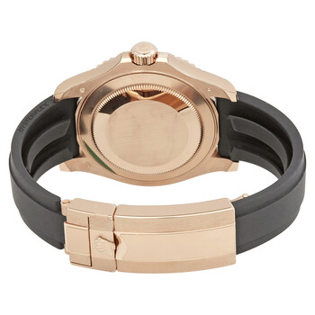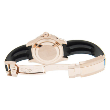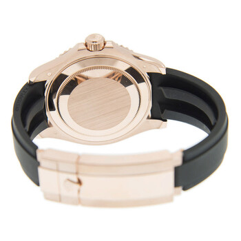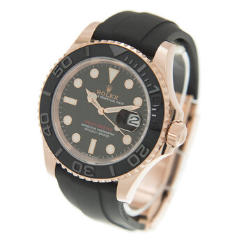 18kt everose gold case with a black oysterflex band. Bi-directional rotating coin edge 18kt everose gold bezel with a black ceramic (count-up elapsed time) top ring. Black dial with luminous everose gold Mercedes-logo and Breguet-style shape hands and doty hour markers. Minute markers around the outer rim. Dial Type: Analog. Luminescent hands and markers. Date display at the 3 o'clock position. Rolex calibre 3235 automatic movement, based upon Rolex 3035, containing 31 Jewels, bitting at 28800 vph, and has a power reserve of approximately 70 hours. Scratch resistant sapphire crystal. Screw down crown. Solid case back. Round case shape, case size: 40 mm. Oysterlock safety clasp. Water resistant at 100 meters / 330 feet. Functions: date, hour, minute, second. Additional Info: original box, manual (complete accessories). Yacht-master Series. Luxury watch style. Watch label: Swiss Made. Item Variations: 126655-0002. Rolex Yacht-Master 18kt Everose Gold Black Dial 40 mm Men's Watch 126655BKSRS.