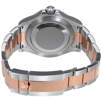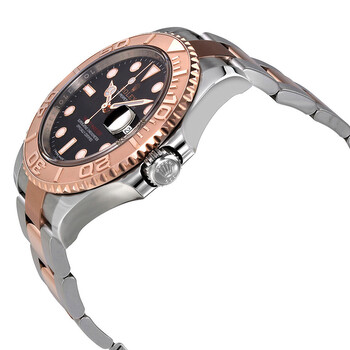 Stainless steel case with a stainless steel Rolex oyster bracelet with 18kt everose gold center links. Bi-directional rotating 18kt everose gold bezel. Black dial with luminous rose gold-tone Mercedes-logo, sword, and Breguet-style shape hands and dot hour markers. Minute markers around the outer rim. Dial Type: Analog. Luminescent hands and markers. Date display at the 3 o'clock position. Rolex calibre 3135 automatic movement, containing 31 Jewels, bitting at 28800 vph, and has a power reserve of approximately 48 hours. Scratch resistant sapphire crystal. Screw down crown. Solid case back. Round case shape. Case size: 40 mm. Oysterlock clasp. Water resistant at 100 meters / 330 feet. Functions: date, hour, minute, second, chronometer. Yacht-master Series. Luxury watch style. Watch label: Swiss Made. Rolex Yacht-Master 40 Automatic Black Dial Men's Watch 116621BKSO.