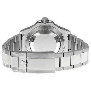 Grey rolesium (combination steel and platinum) case with a silver-tone stainless steel rolex oyster bracelet. Bi-directional rotating time-lapse white platinum bezel. Blue dial with luminous silver-tone Mercedes-logo, sword, and Breguet-style shape hands and dot hour markers. Minute markers around the outer rim. Dial Type: Analog. Luminescent hands and markers. Date display at the 3 o'clock position. Rolex Calibre 3135 automatic movement with a 50-hour power reserve. Scratch resistant sapphire crystal. Screw down crown. Solid case back. Round case shape, case size: 40 mm, case thickness: 13 mm. Band width: 18 mm, band length: 8 inches. Oysterlock clasp. Water resistant at 100 meters / 330 feet. Functions: date, hour, minute, second, chronometer. Luxury watch style. Watch label: Swiss Made. Rolex Yacht-Master 40 Automatic Blue Dial Stainless Steel Oyster Bracelet Men's Watch 116622BLSO.