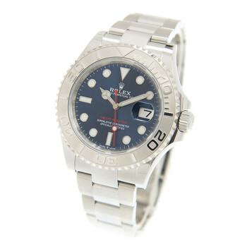 Oystersteel and platinum case with a oystersteel Rolex oyster bracelet. Bi-directional rotating 950 platinum bezel. Blue dial with luminous silver-tone hands and dot hour markers. Minute markers around the outer rim. Dial Type: Analog. Luminescent hands and markers. Date display at the 3 o'clock position. Rolex calibre 3235 automatic movement, based upon Rolex 3035, containing 31 jewels, bitting at 28800 vph, and has a power reserve of approximately 70 hours. Scratch resistant sapphire crystal. Screw down crown. Solid case back. Round case shape. Case size: 40 mm. Oysterlock clasp. Water resistant at 100 meters / 330 feet. Functions: date, hour, minute, second. Additional Info: original box, manual (complete accessories). Yacht-master 40 Series. Luxury watch style. Watch label: Swiss Made. Rolex Yacht-Master 40 Blue Dial Men's Watch 126622BLSO.