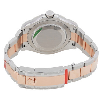 Silver-tone stainless steel case with a two-tone (silver-tone and rose gold-tone) stainless steel and 18 ct everose gold oyster bracelet. Bi-directional rotating 18 ct everose gold bezel. Chocolate dial with everose gold Mercedes-logo, sword, and Breguet-style shape hands and index hour markers. Minute markers around the outer rim. Dial Type: Analog. Luminescent hands and markers. Date display at the 3 o'clock position. Rolex Calibre 3235 automatic movement with a 70-hour power reserve. Scratch resistant sapphire crystal. Screw down crown. Solid case back. Round case shape. Case size: 40 mm. Oysterlock clasp. Water resistant at 100 meters / 330 feet. Functions: date, hour, minute, second. Luxury watch style. Watch label: Swiss Made. Rolex Yacht-Master 40 Chocolate Dial Automatic Men's Steel and 18 ct Everose Gold Oyster Watch 126621CHSO.