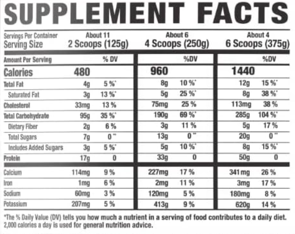 King Mass XXL ერთი პორცია (125 გრამი) შეიცავს: