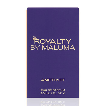 Launch year: 2022. Fragrance Family: Amber. Top notes: Orchid pink leopard, Tangerine, Clementine. Heart notes: Orange blossom, Jasmine, Red rose. Base notes: Amber, Vanilla, Patchouli. Design house: Royalty by Maluma. Design house category: celebrity. Design house country: Colombia. Scent name: Amethyst. Gender: Ladies. Category: Fragrance. SubType: EDP Spray. Size: 1 oz. Barcode: 850024399808. Royalty by Maluma Ladies Amethyst EDP Spray 1 oz Fragrances 850024399808.
