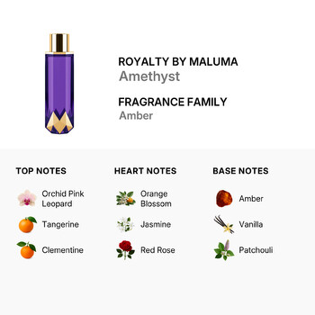 The base notes of Amethyst leave a lasting impression with the warm embrace of Amber, the creamy sweetness of Vanilla, and the earthy richness of Patchouli. Together, these notes weave a tapestry of scent that lingers on the skin, creating an unforgettable signature to your presence.